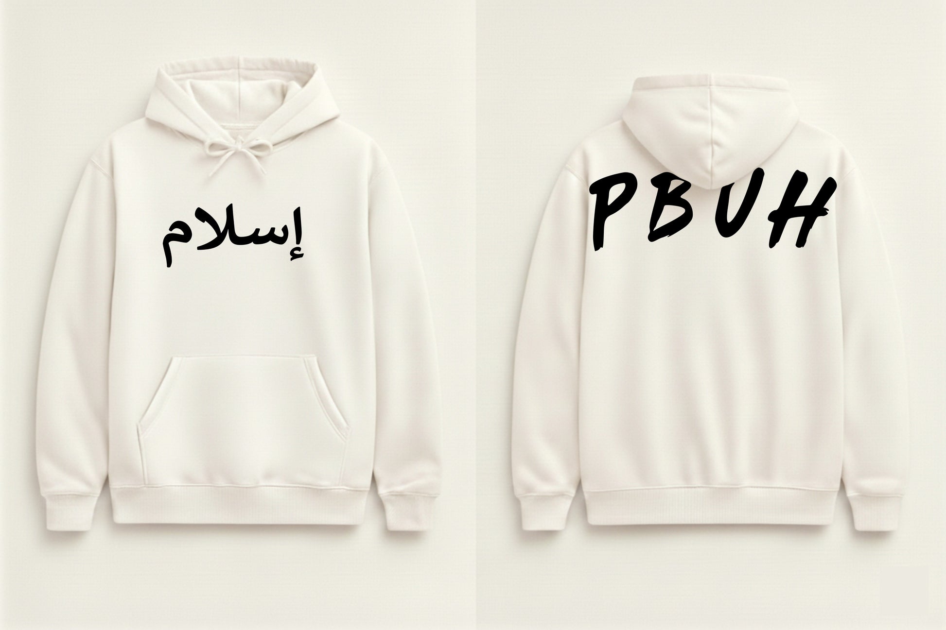Featuring Islam in bold Arabic script on the front and PBUH on the back, this piece reflects identity, devotion, and love for the Messenger. Wear it as a personal reminder or share the message with others — blending faith with everyday style.